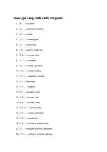Coniuga i seguenti verbi irregolari